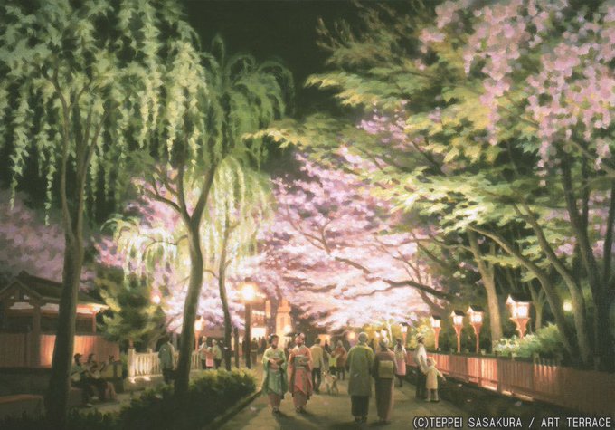 笹倉鉄平 Teppei Sasakura 『春色な夢の宵~Under the Cherry Blossomes and Willows~』 2013年 #京都 「画業30周年記念 上野の森個展 目録画集」に収録されています 笹倉鉄平ちいさな絵画館 kaigakan-teppei.net #絵 #桜好きな人と繋がりたい #京都好きな人と繋がりたい #桜 #さくら #満開