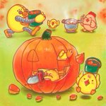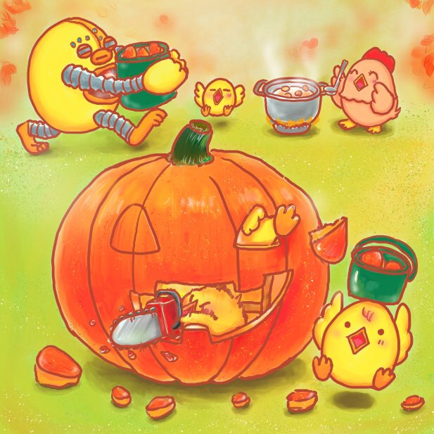 ハロウィンの準備中よ〜🎃 みんなで頑張って進めましょう😌💕 #ブラウンさん #ひよこ #準備中 #ハロウィン #ハッピーハロウィン #カボチャ #ジャックランタン #ゆるいイラスト #イラスト好きな人と繋がりたい #イラストレーターさんと繋がりたい #いいねした人フォローする #バズりたい