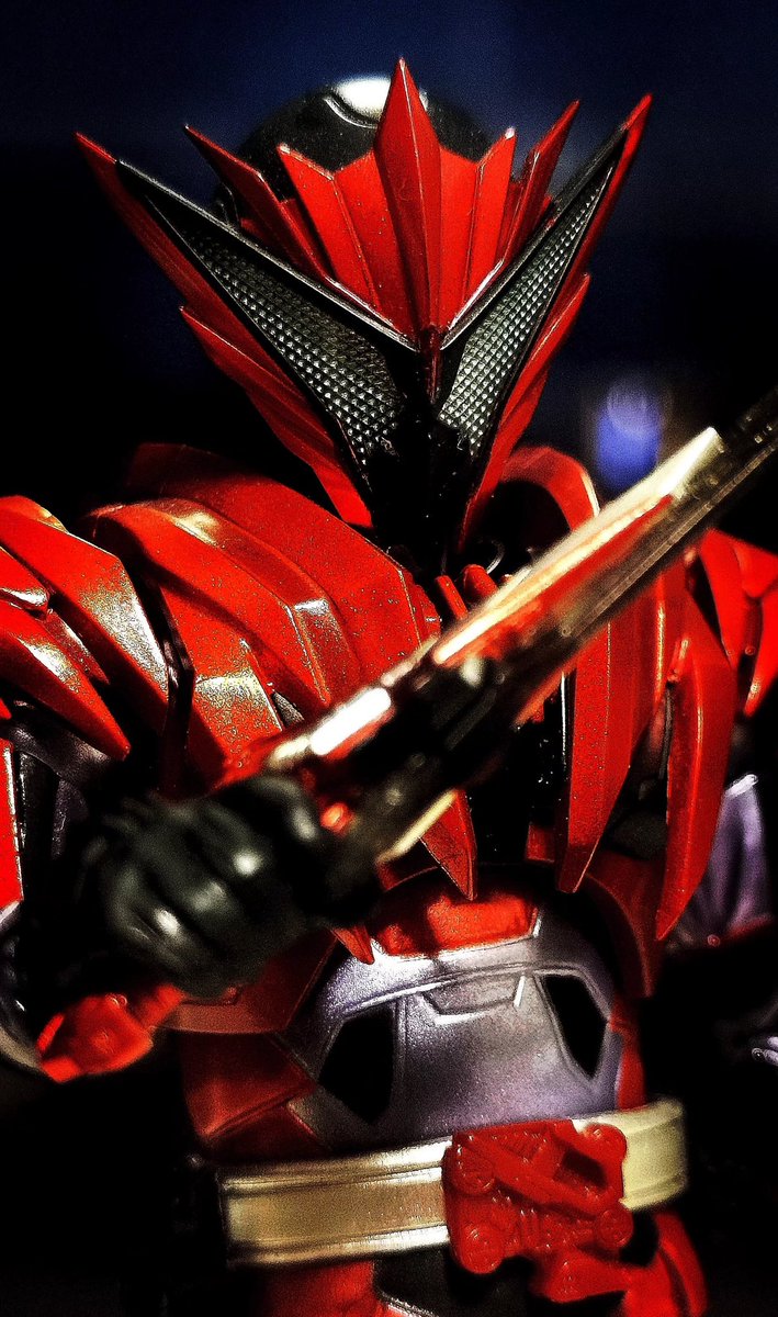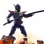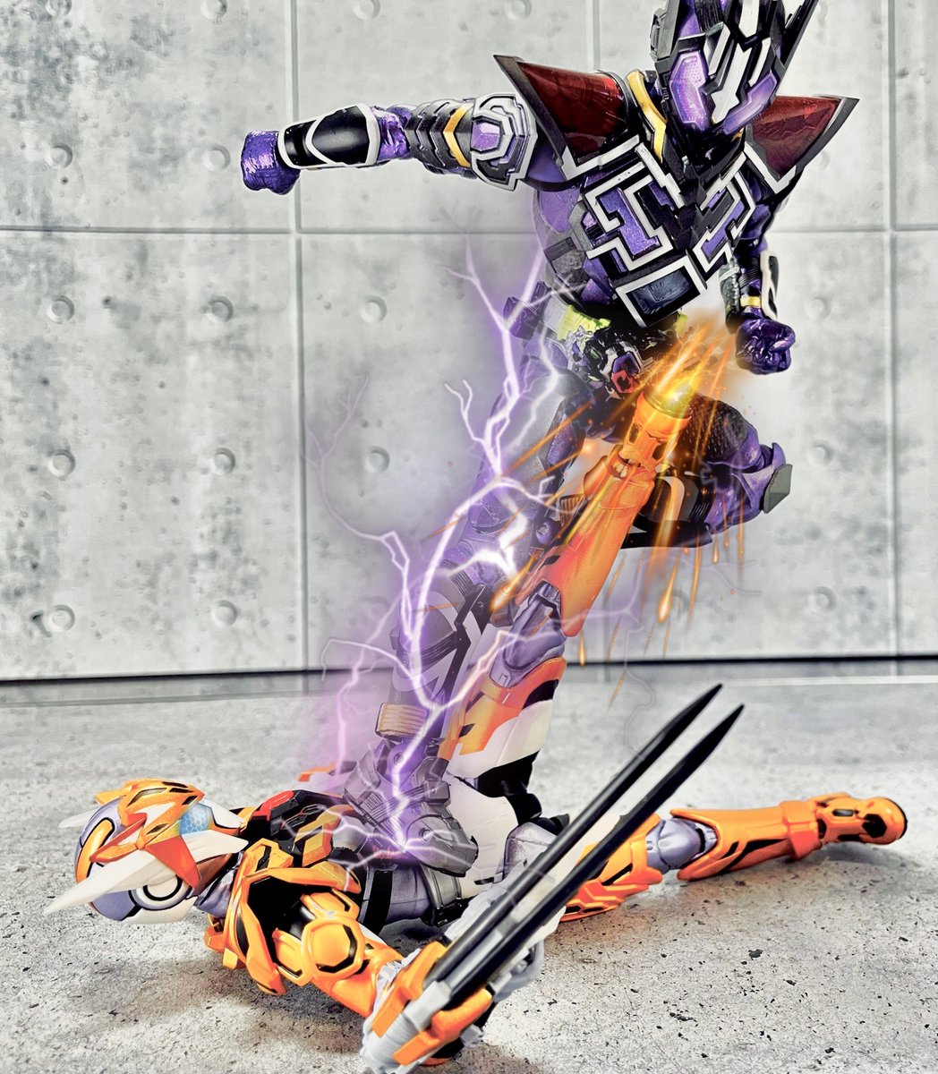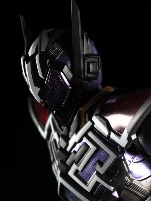 #夜のフィギュア撮影会 お題「剣/刀」過去 仮面ライダー滅亡迅雷 滅(ホロビ)のトレードカラー紫を基調とした仮面ライダー滅亡迅雷 武器は「滅の刀」を使用する⚔ #滅亡迅雷 #仮面ライダー #仮面ライダーゼロワン #装動 #オモ写