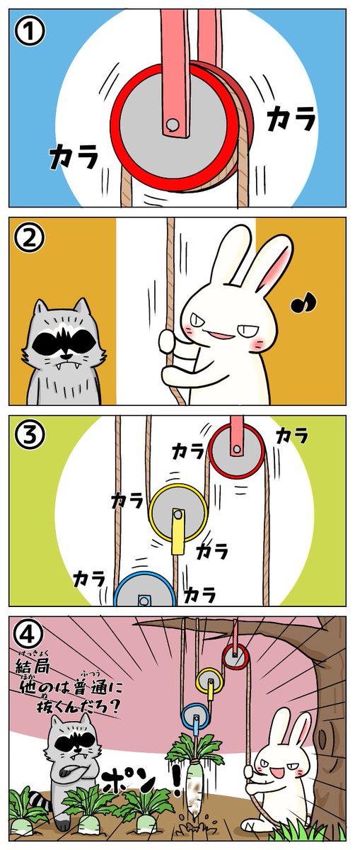 《道化師と陽気な仲間たち》による、パントマイム(熊さんと一緒に) 🎪🃏😸😺🐶🐻 ☆滑車☆ 滑車を使って、穴に落ちた熊さんを助ける #道化師と陽気な仲間たち #アトリエの系譜3 #マンガスタイルイラスト #アナログ #モノクローム #オリジナルキャラクター #パントマイム #滑車 #ペン画