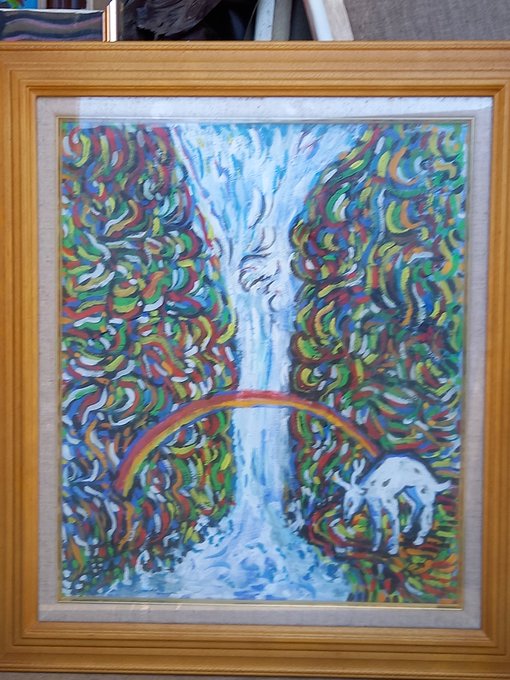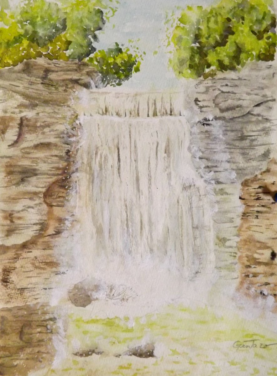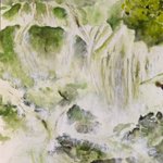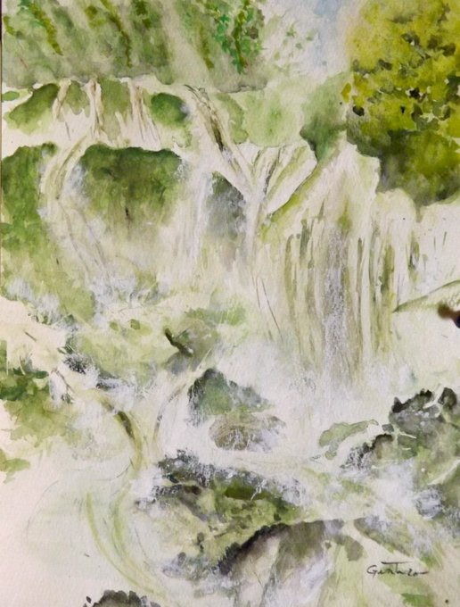 「想廻の滝」 A4 アクリルガッシュ・水彩色鉛筆 想いは星になって 光り流れ廻り また光照らしますように #イラスト #Illustration #art #滝 #waterfall #芸術の輪 #ArtOnTwitter #みんなで楽しむTwitter展覧会