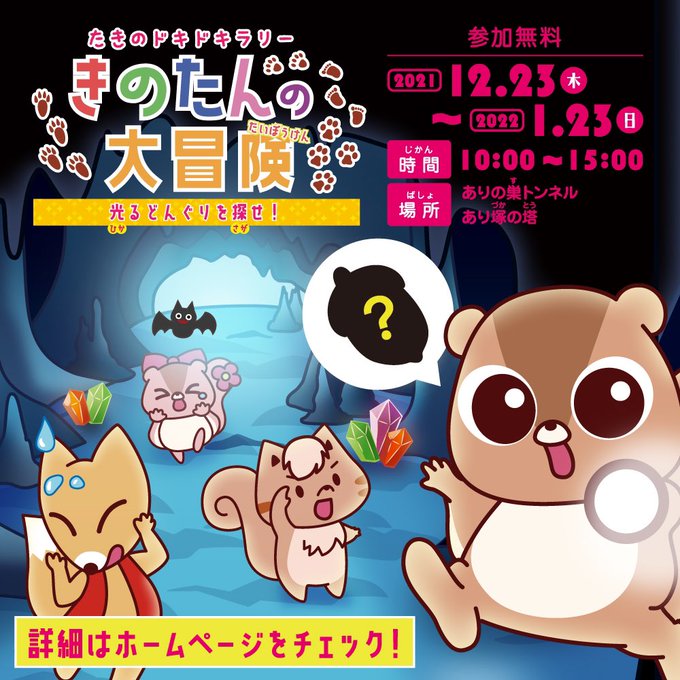 #滝野すずらん丘陵公園 (@takino_official )の冬イベント「きのたんの大冒険〜光るどんぐりを探せ!〜」のイラストを描かせて頂きました(*’▽’*)鍾乳洞風✨ 解答用紙や問題にもイラスト描いたので、遊びに行ってくれたら嬉しいです🐾(´>∀<`) 参加無料🍀 🌟詳細はこちら! bit.ly/2021_takino_wi…