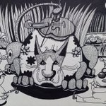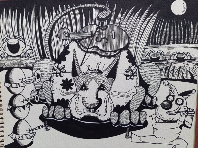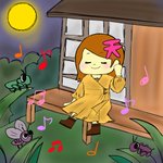 すずむしさん・コオロギさんたちの演奏を聴いている天テンちゃん😄 リンリン・ちんちろ秋だなー♬♪♩ #虫の声 #演奏会 #芸術の秋 #イラスト #イラスト好きな人と繋がりたい #絵描きさんと繋がりたい #ゆるいイラスト