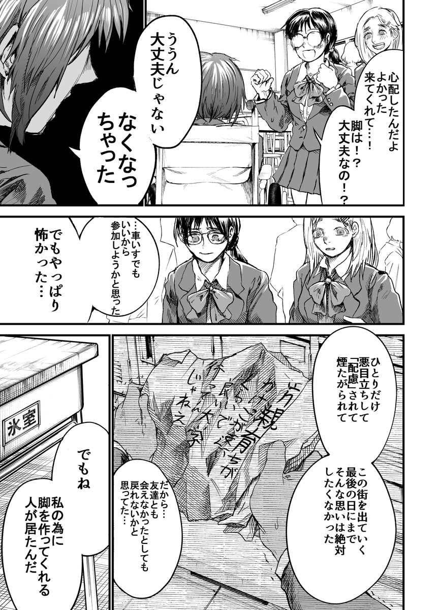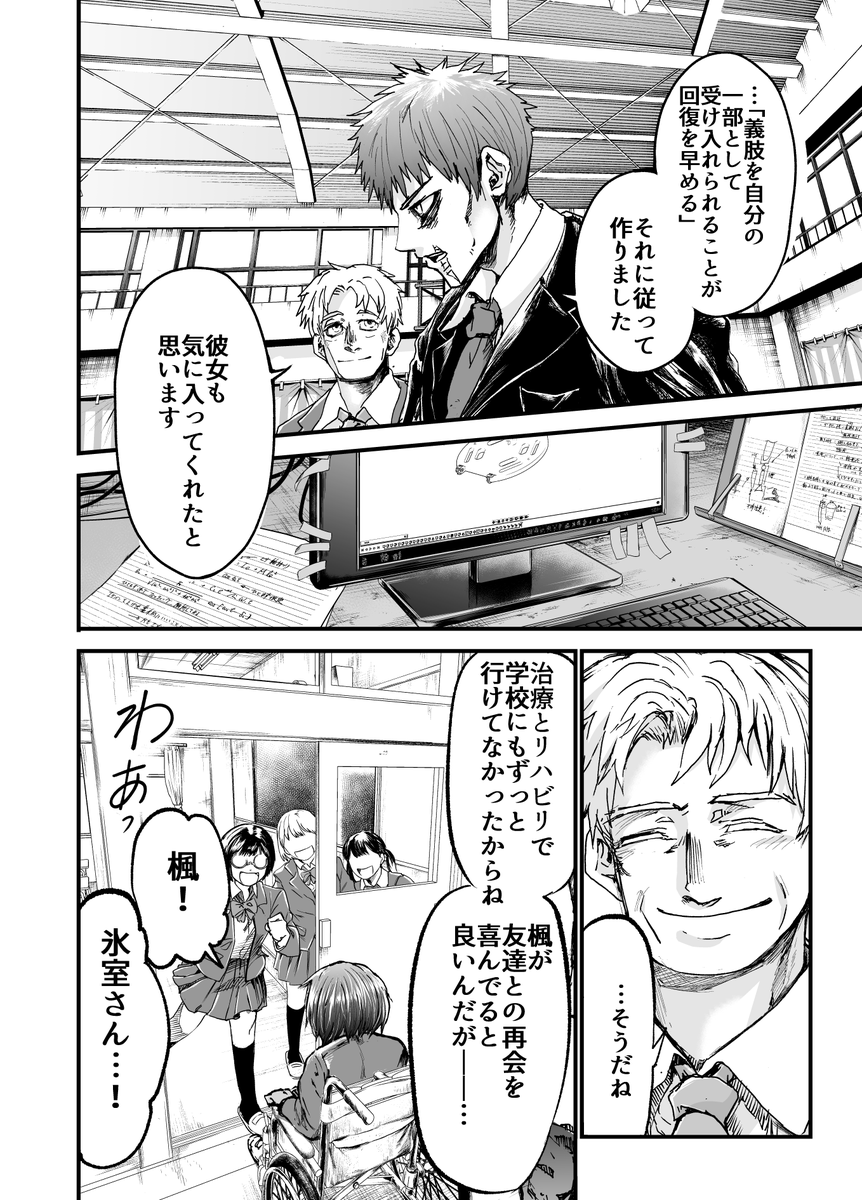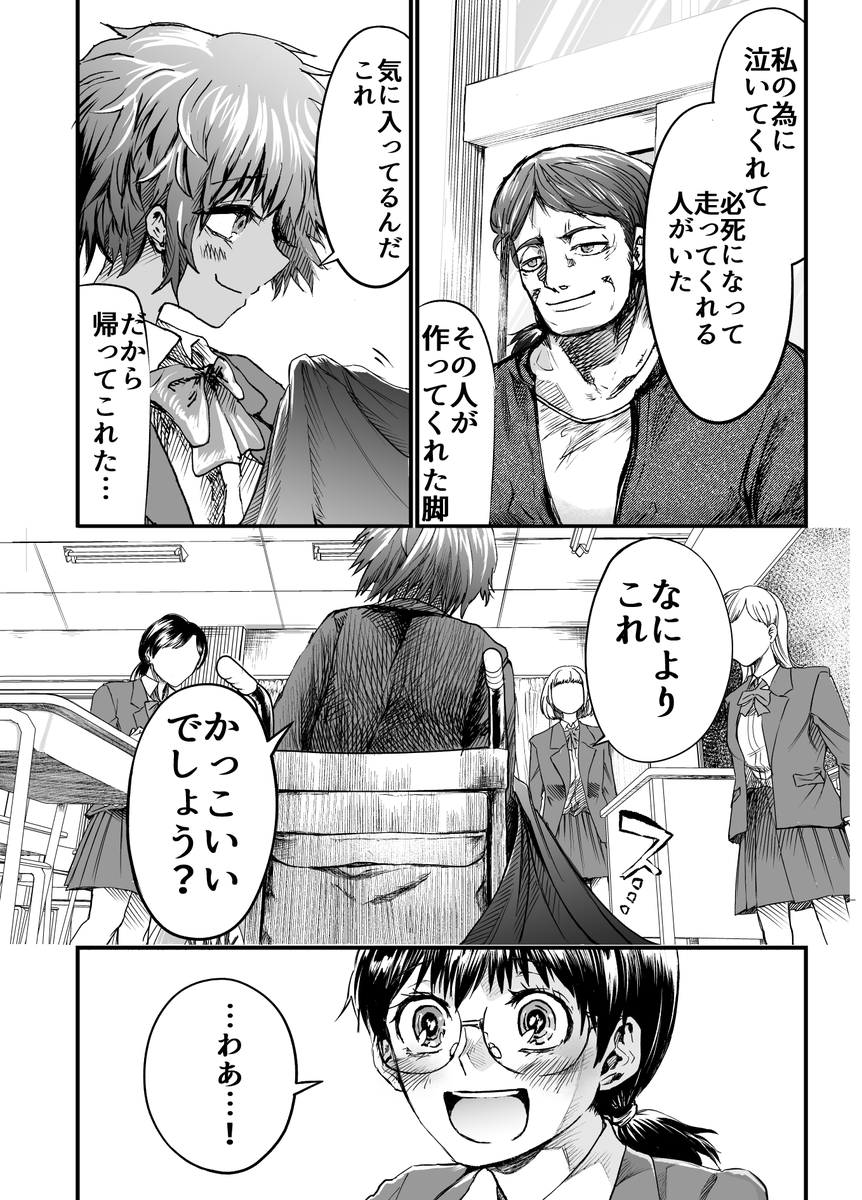 yanmaga.jp/comics/%E3%82%… 「アンダードッグ」4話が本日公開されました。楓の卒業式です。3話まで作っていた義足が今回お披露目になります。ここで第一章終わりです、1話から無料公開されているので是非 #漫画アンダードッグ