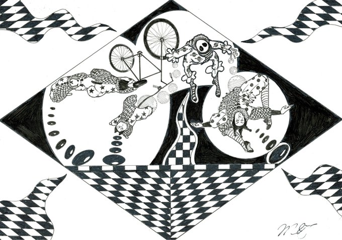 👽🛸【エイリアン グレイの、魔法みたいなパワー】 by🎪🃏😸😺🐶《道化師と陽気な仲間たち》 #道化師と陽気な仲間たち #アトリエの系譜S #アナログ #モノクローム #オリジナルキャラクター #道化師 #ペン画 #絵本挿 #picturebookillustration #宇宙人 #エイリアン #グレイ #漫画スタイル