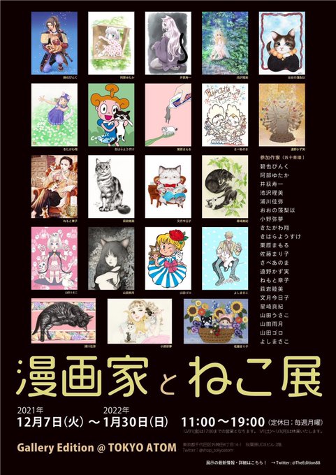 「漫画家とねこ展」12/7から秋葉原で展示です。会期も長めなので小さいねこ絵会期中に用意できたらなって思ってます。どうぞ宜しくお願い致します😊 #漫画家とねこ展 #秋葉原UDX #TOKYOATOM