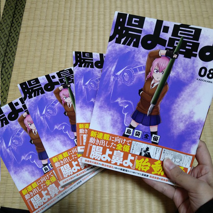 こんばんは!Twitter告知クソ野郎です!! お待たせしました!腸よ鼻よ8巻が3月16日に発売決定しました!めちゃ嬉しい!!ご予約は下からお願い致します🤲 #腸よ鼻よ #潰瘍性大腸炎 Amazon amzn.asia/d/970429A 紀伊國屋 kinokuniya.co.jp/f/dsg-01-97840… 楽天 books books.rakuten.co.jp/rb/17413622/