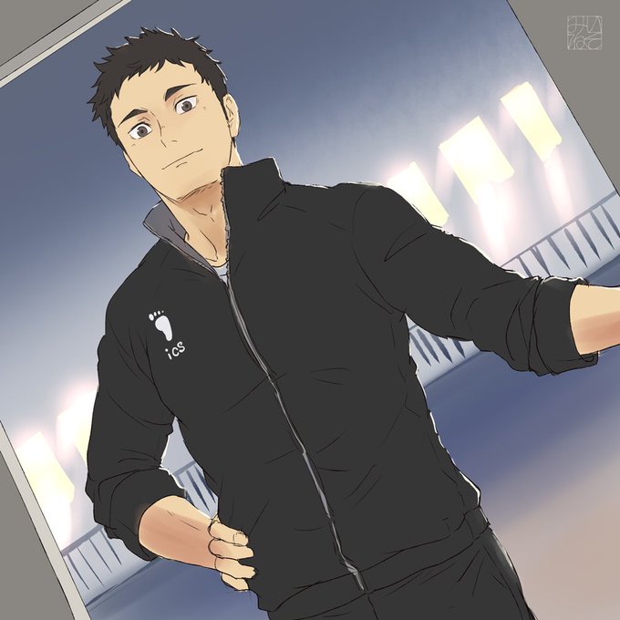 AB〇MAでハイキュー流しながら昨年ずいぶんたくさん反応いただいた澤村大地(フルネームで呼びたくなる)の逆光取っ払った版でお茶を濁しておきますねさっきまではスラダン流してたし指さし阻止される青根くんかわいい ↓昨年あげたやつ pixiv.net/artworks/98077…