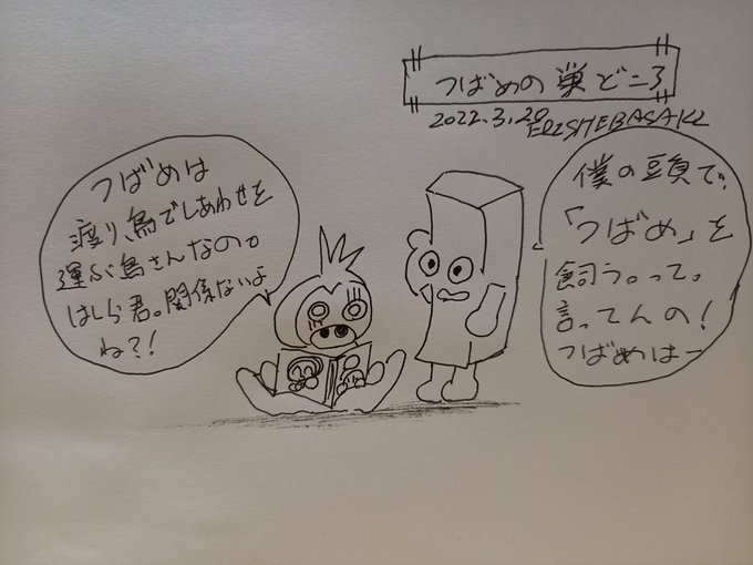 「つばめの巣どころ」 コンパマンは、はしらくんの頭上で「つばめ」を飼いたいご様子なのだが、つばめは自分で巣を作るから、はしらくんは関係ない話。 つばめを飼って、どうするのだ?! #おさるさん #激務労働 #はしらくん #コンパマン #絵描きさんと繋がりたい #絵師さんと繋がりたい
