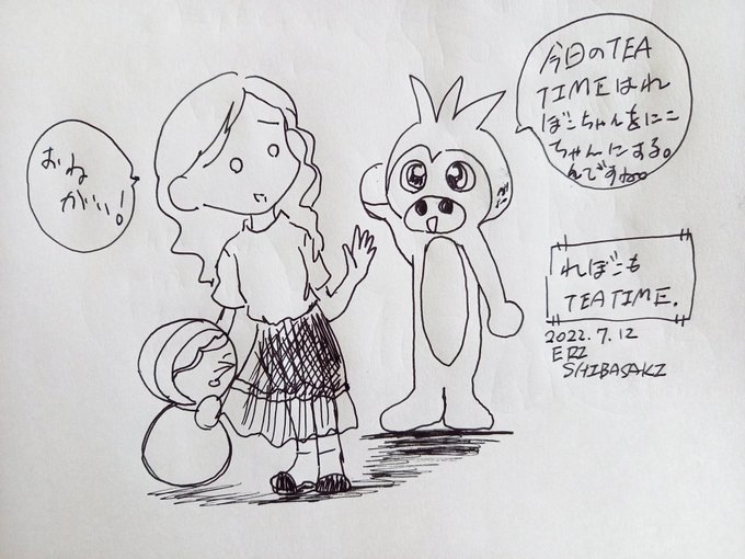 「れぼこもTEA TIME」 選挙明けにお茶をしよう!と、約束していたおさるさんと担当ちゃんねー。 そこにれぼこがやってきました。 #れぼこ #おさるさん #担当ちゃんねー #激務労働 #選挙明け #絵描きさんと繋がりたい #絵師さんと繋がりたい