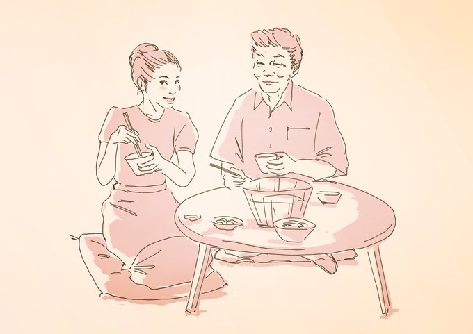 るいが出てきた瞬間かみしめて喜ぶ和子さん。ジョーの演奏を聴いて泣いてしまう木暮さん。良かったな〜!😭 #カムカムエヴリバディ #カムカム絵 #濱田マリ #近藤芳正 #illustration #イラスト