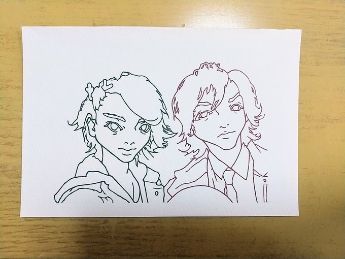 #火金お絵描き おはよう御座います🌞✨ #色鉛筆画 の #似顔絵 の新作進捗をご紹介❣️ 夏休み前、子ラと一気観👀💥(笑)「#仮面ライダーW」翔太郎くんとフィリップくん👨❤️👨✨ フィリップくんの髪の毛の1段階目の陰を「Lilac」で💜✨ #おは戦40909sk🍺 #桐山漣 #菅田将暉 #仮面ライダーイラスト