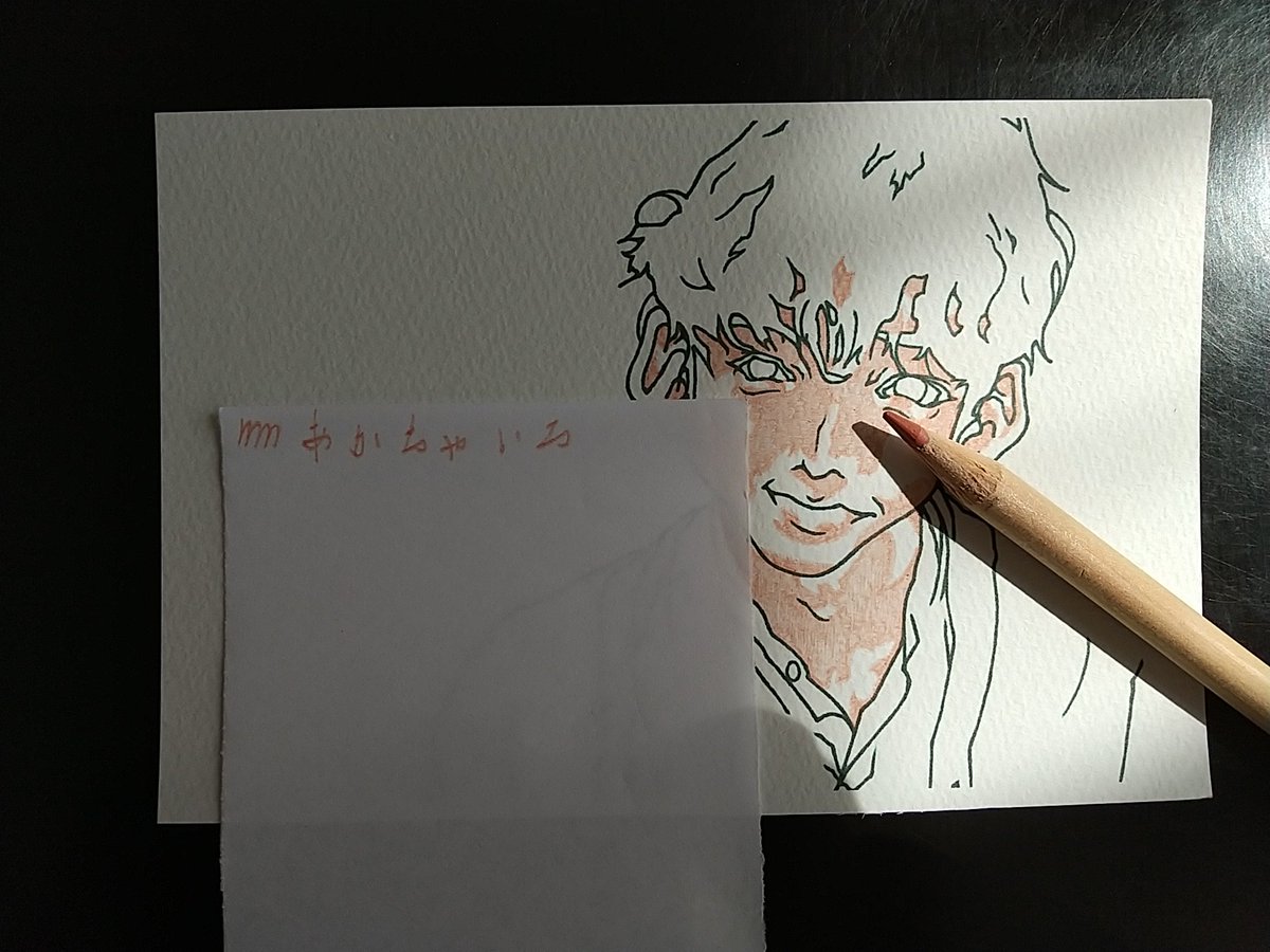 #火金お絵描き おはよう御座います🌞✨ #色鉛筆画 の #似顔絵 の新作進捗をご紹介❣️ 夏休み前、子ラと一気観👀💥(笑)「#仮面ライダーW」翔太郎くんとフィリップくん👨❤️👨✨ 翔太郎くんの髪の毛の1段階目の陰を「あか」で❤️✨ #おは戦40923sk🍺 #桐山漣 #菅田将暉 #仮面ライダーイラスト