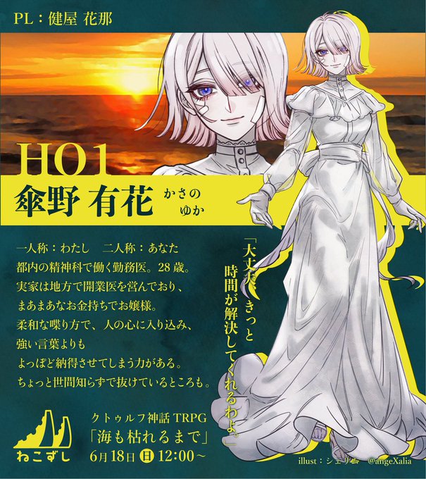 クトゥルフTRPGシナリオ 『海も枯れるまで』 🔻PL HO1:健屋 花那 @sukosuko_sukoya HO2:黛 灰 @mayuzumi_X 🔻日時 前編:6月18日(土) 12:00〜 後編:6月19日(日) 12:00〜 🔻待機所 プレミア公開予定 前編:youtu.be/AtkbpkcC3gM 後編:youtu.be/U2sAlfusnMQ #灰那も枯れるまで