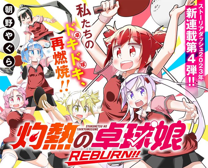 お知らせの通り、 4月28日から 「灼熱の卓球娘 REBURN!!(リバーン)」 が始まります! 「灼熱の卓球娘」の続編作品です!! storia.takeshobo.co.jp/manga/shakunet… #卓球娘 #灼熱のアイドル娘