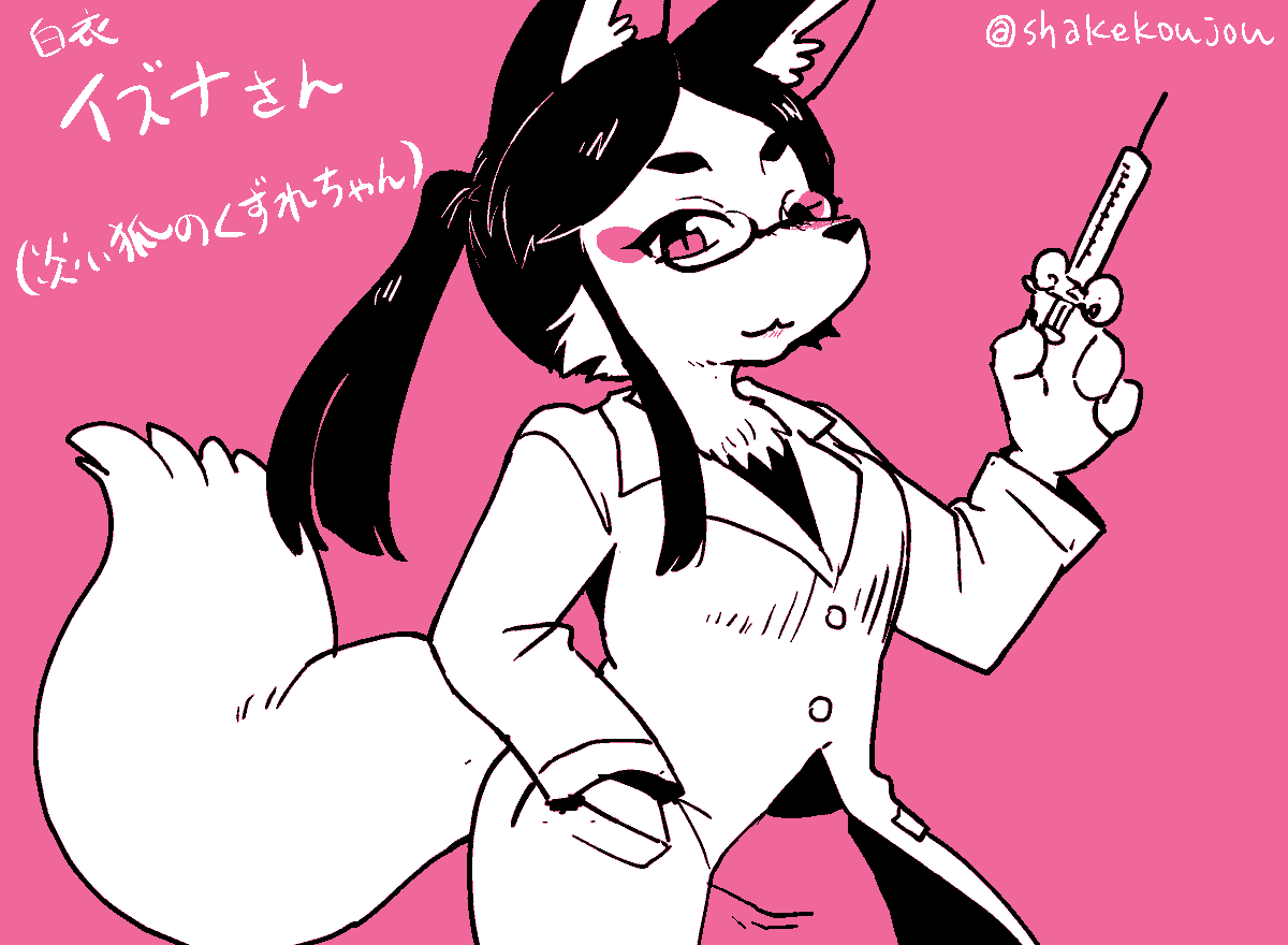 おはようございめゃす。 #起きらくがき #災い狐のくずれちゃん 3巻の白衣眼鏡イズナさんは性癖に注射器がぶっ刺さりますね…💉 ※眼鏡はデフォルト 大人狐は若い狐っ子と比べてマズルが長いとこも好き…🦊