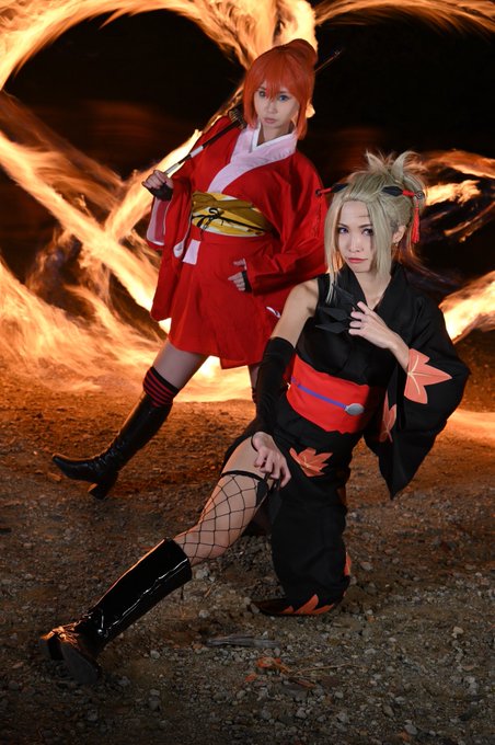 銀魂 / 吉原炎上篇 / cosplay -- 次会う時は、陽の下で -- 𓂃 𓈒𓏸𑁍 神楽@ai_animexx 月詠@sorutotantan 📸@yuuki18001800 #鴨コス #彦根オープンセット #炎撮影