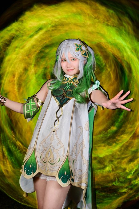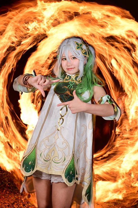 ✧︎ 原神 コスプレ ✧︎ 知恵の神 ナヒーダ 🔥『 烈開花 』🌱 カメラマン▶︎ユーキさん@yuuki18001800 イベント▶︎鴨コス @shimogamosalon #鴨コス #彦根オープンセット #炎撮影 #GenshinImpact #Cosplay #nahida