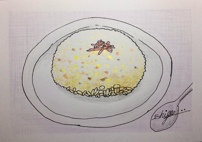 〜炒飯(チャーハン)〜 今朝は色鉛筆を使って、炒飯を描いてみました。チャーシューやねぎ、人参などを刻んで卵でコーティングしたご飯を強い火力で一気に作りますよね。 #色鉛筆画 #食べ物 #炒飯 #絵を描いている人と繋がりたい #絵が好きな人と繋がりたい