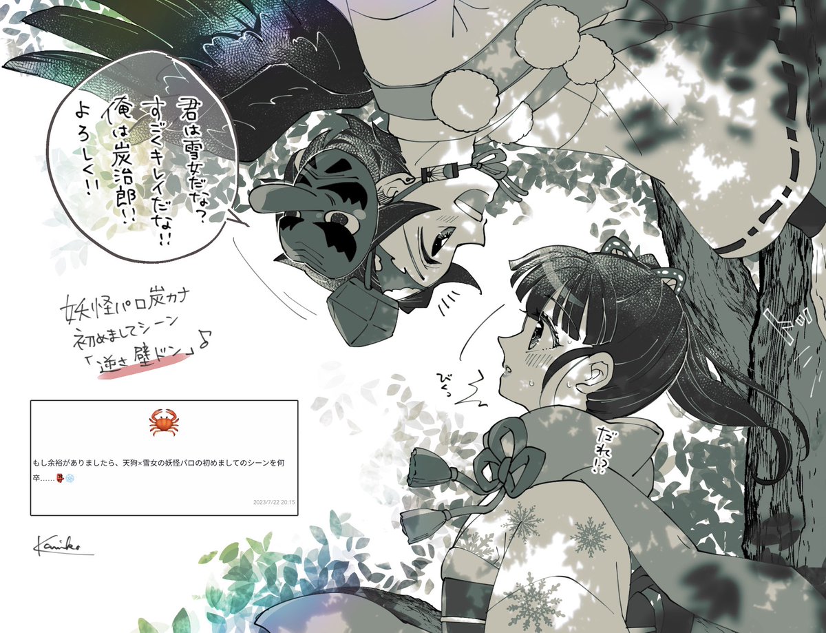 2023/7/22 20:15の方へ リクありがとうございました!!初めての出会いってことでよかったでしょうか! 逆さ壁ドン!そういえば先週あたり妖怪パロが流行っていたような…(゚∀゚)やっと追いついた!#炭カナ #wave_nikoinoillust wavebox.me/msg/hq2xe2io2z…