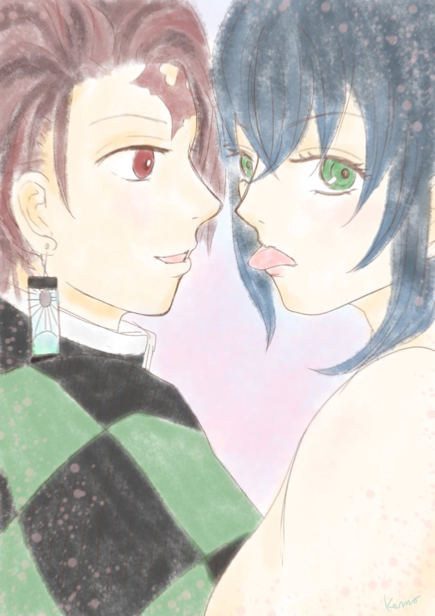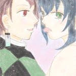 #炭伊真ん中バースデー_1202 ㊗️炭伊ちゃんおめでとう🎉 お題、2人で『いちゃいちゃ💕』 ほんとスミマセ…ン💧お題が何も浮かばず無心で描いて塗りました🖌水彩塗り難すぃ…( ´ ▽ ` )