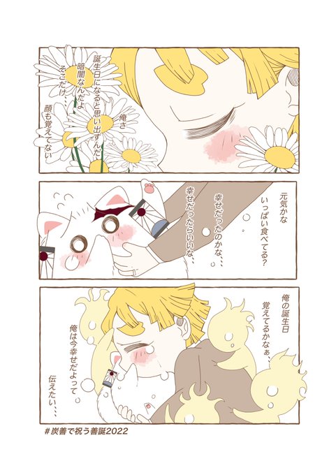#炭善で祝う善誕2022 あったあった!この素敵タグ~!!🥳✨ 見た瞬間とっても参加したかったのですが漫画が9月に間に合わないかもなので…みなさまの妄想力で私の脳内ネームを保管していただけたら幸いです…🙏 (私の中ではだいたいたんぜんでした)
