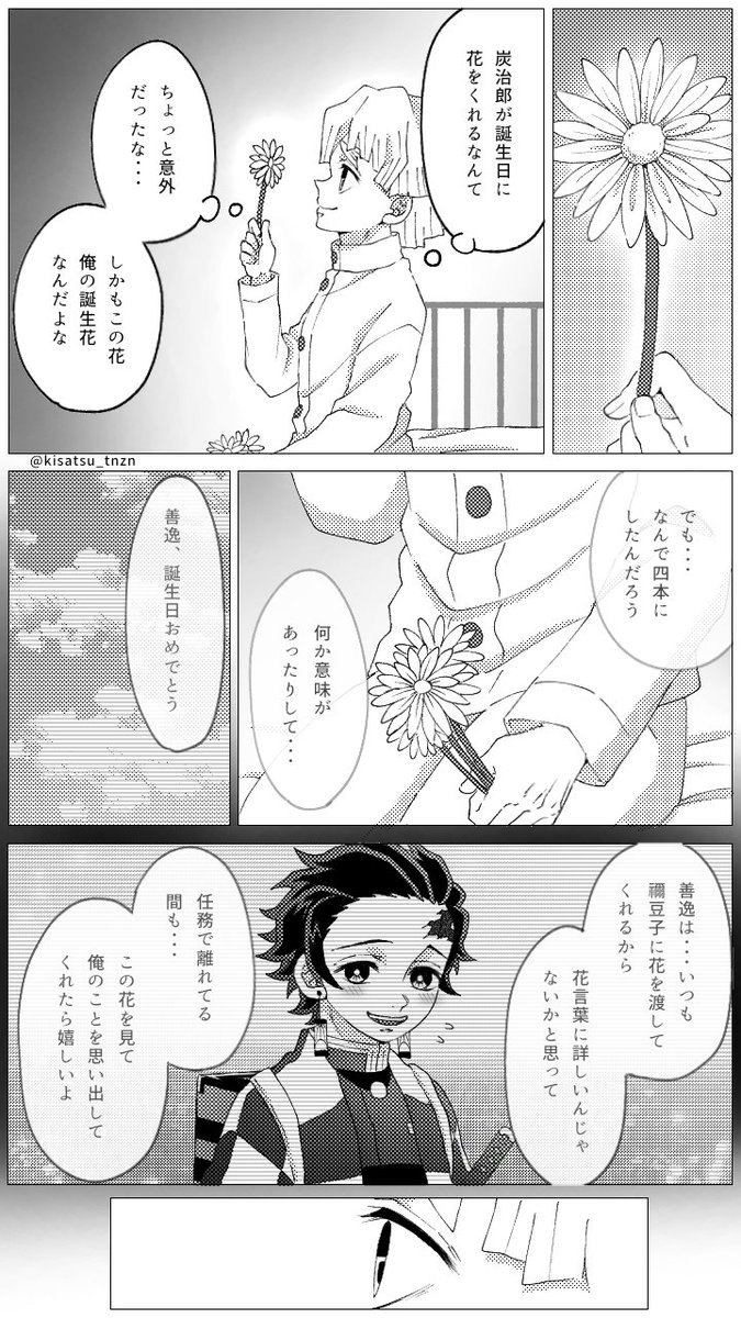 kmt/炭善(再掲)1/4 (全12P+蛇足2P) 去年のポイピクに載せてた、善i逸誕生日漫画(2021年ver)です。 Twitterにあげる勇気がなかったのですが、思い入れのある作品なので今日のこの日に… 注意⚠2i04話後で🎴が25歳を迎えてます⚠ ※絵が古いのは許して下さい #炭善で祝う善誕2022