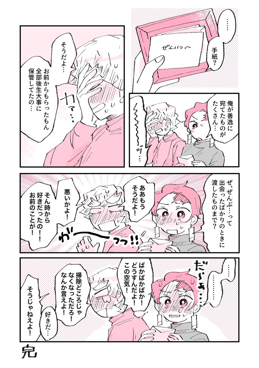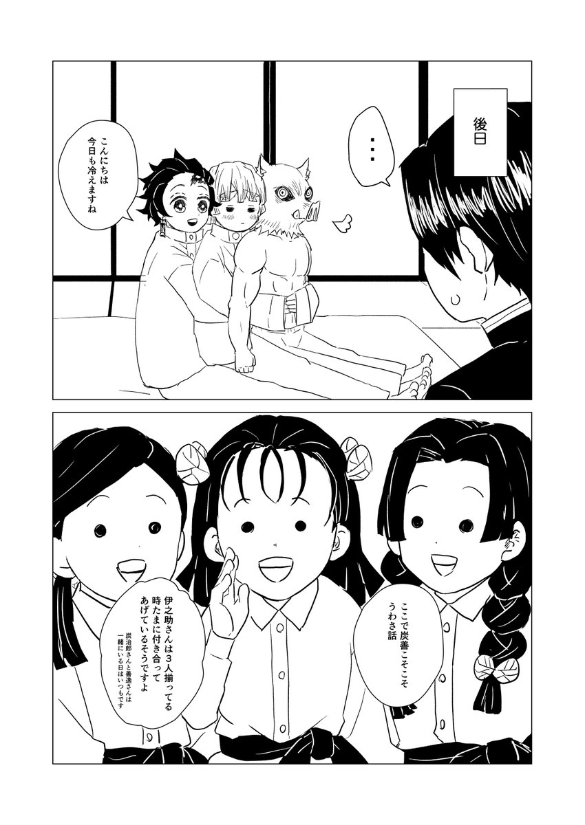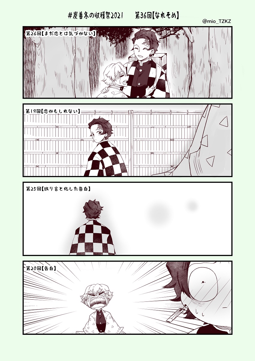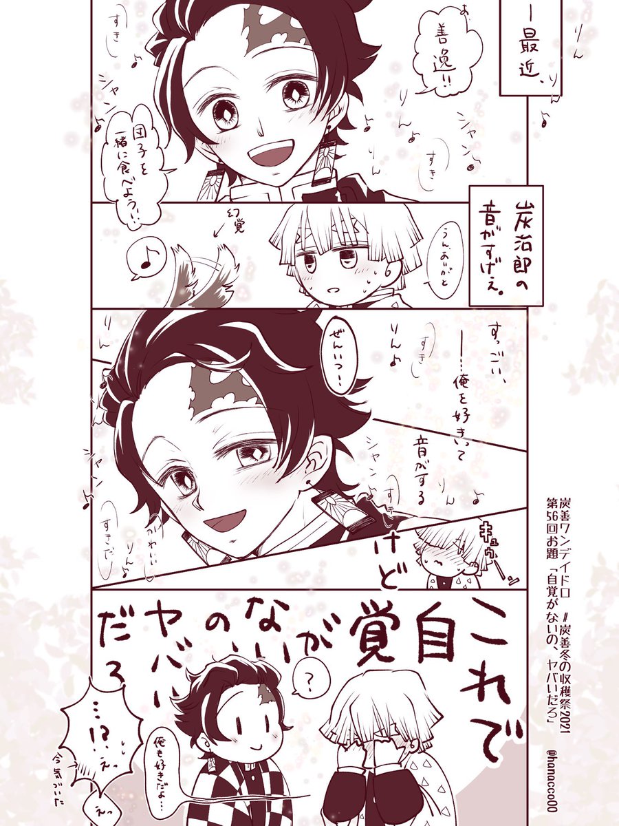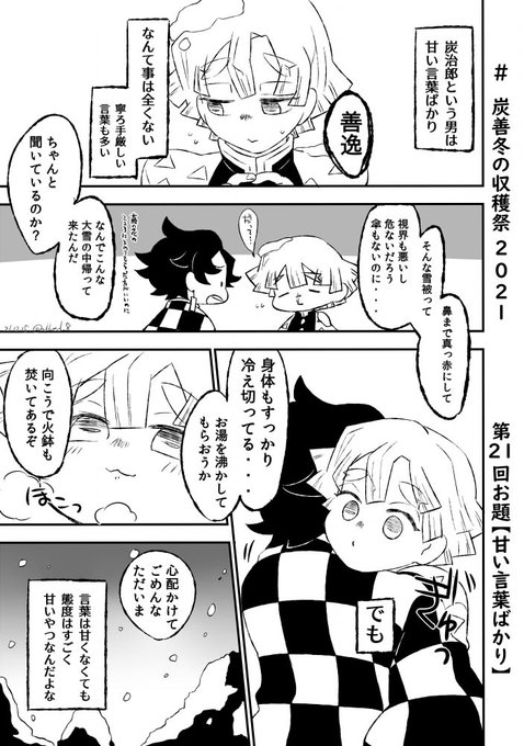 #炭善冬の収穫祭2021 第54回より「寝言」をお借りしました! 開催ありがとうございます! 遅刻しちゃったんですが。。参加できて嬉しいです! 制作時間はネーム3h/下書き&ペン入れ12h/仕上げ8h で合計23時間です。。ううもっと筆が早くなりたい。。 原作軸だけどふわっとで。。両片思い炭善です。