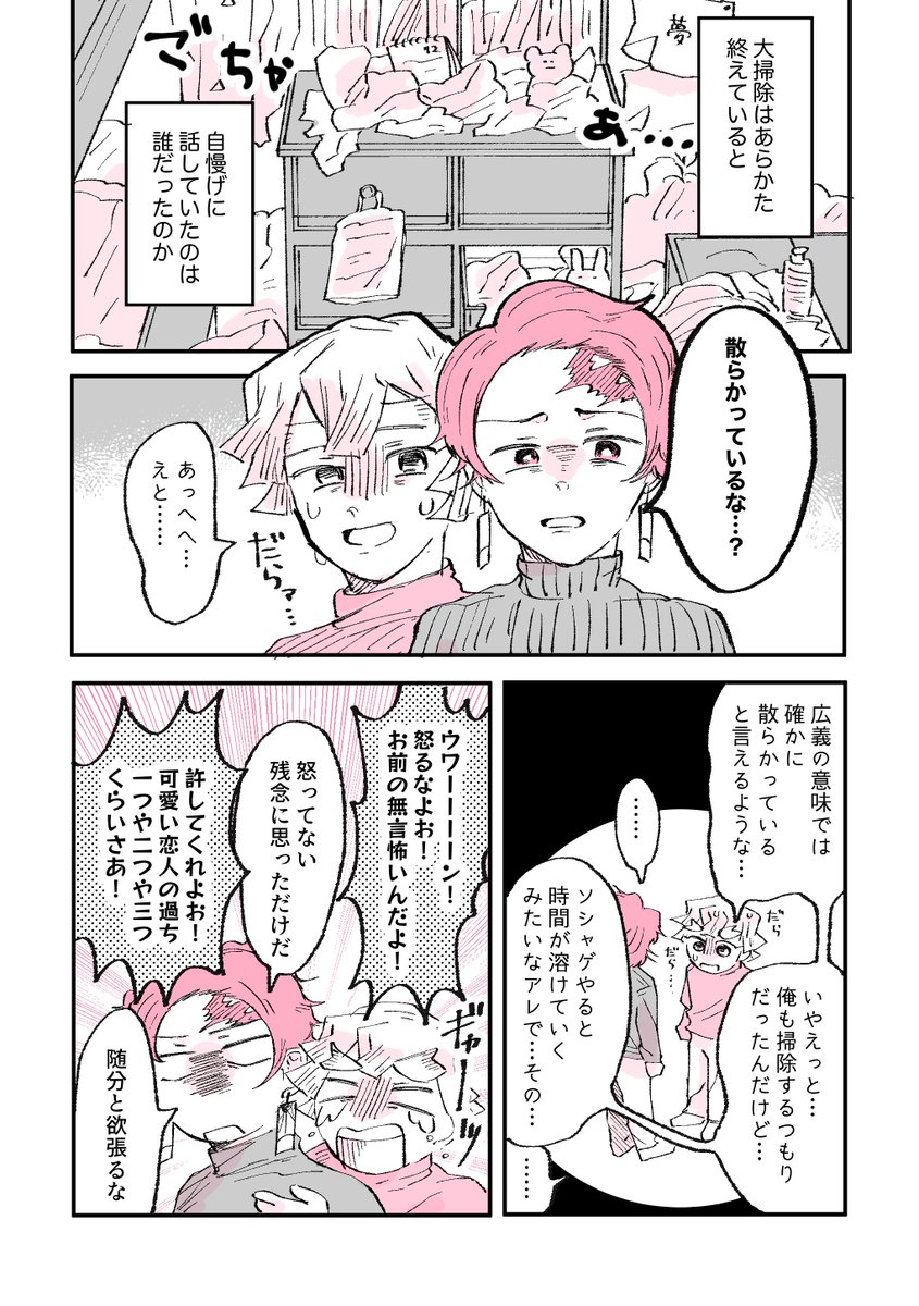 開催いつもありがとうございます! 大大遅刻本当にすみません🙇♀️ 第56回お題『掃除』お借りしました。 また来年の収穫祭も楽しみにしています! ※現パロ、ちょっと下ネタ(?)です。 ツリーに続きます。 #炭善冬の収穫祭2021