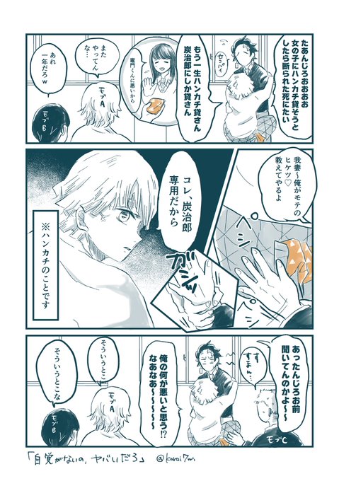 #炭善冬の収穫祭2021 開催ありがとうございます。 大遅刻、というかタグ付けるか迷ったんですが… 所要時間も2hですすみません🙇♀️ 「自覚がないの、ヤバいだろ」 のお題お借りして描かせていただきました。 ツッコミ役等モブがいます。