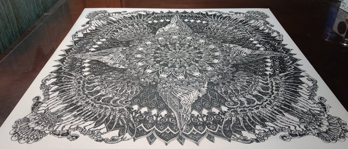 #ペン画 #落書き #アナログ絵 #アナログ絵描きさんと繋がりたい #絵柄が好みって人にフォローされたい #無名絵師 #フリーハンド #点描曼荼羅 ペン先が潰れちゃった青マーカー、捨てる前にひと仕事。何やってるんだか。でもなんかコレはコレで良くないすか?しかしカサカサだ…。