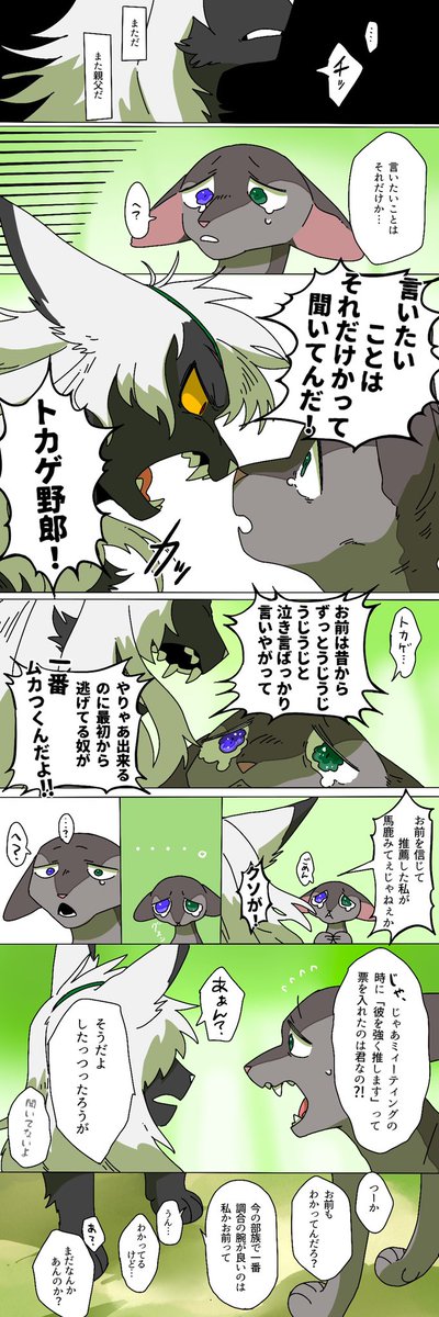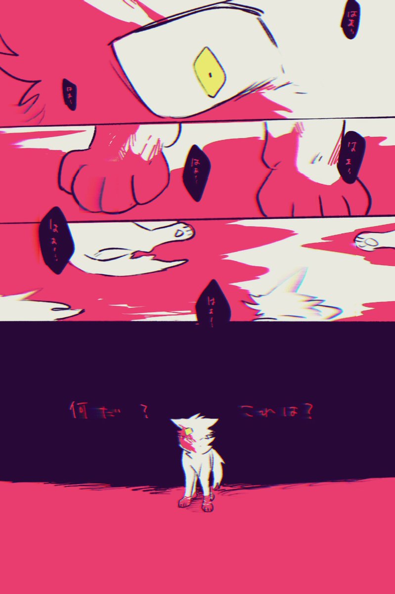 #烏兎の戦士たち_イラスト 過去漫画を投稿します 当時、真昼の部族には看護猫がいませんでした。 そのためウィートペルトとライオンファングの2匹は、負傷したリリーイヤーを担いで、本来半日以上かかる距離を1時間で走ってきて、優れた治療技術を持つ黄昏の部族に助けを求めに来たのでした。