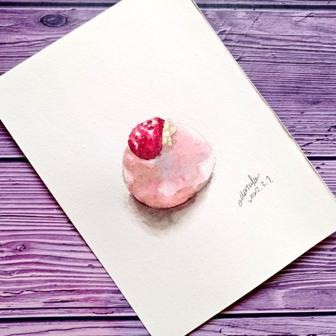 【自己做•自己畫】圓頂草莓夾心慕斯蛋糕 甜甜的草莓蛋糕 - #strawberry #草莓蛋糕 #烘焙 #自己做自己畫 #丸玩手作 #illustrator #painting #drawing #watercolor #插畫 #水彩 #dessert #illustration #art #イラスト #水彩画 #插畫 #手繪