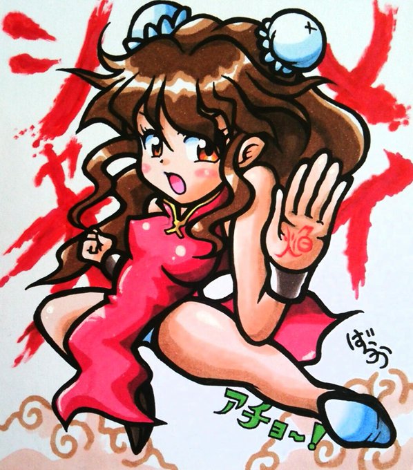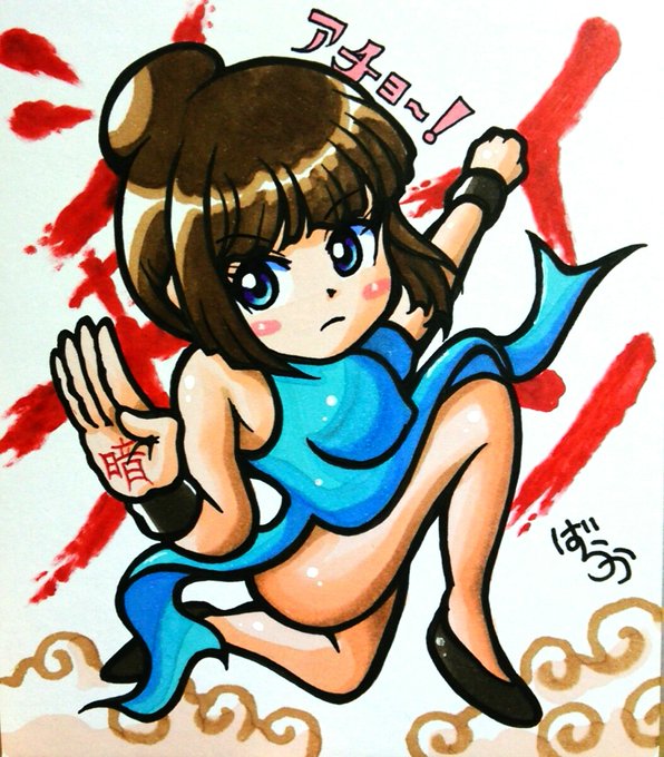 ミニ色紙に #焔龍聖拳シャオメイ から #シャオメイ さんを描きました\(^o^)/ ピクセルさん @pixel_japan の #SWITCH の 新作ゲームです\(^o^)/ ひゃっきさん @Ulimu_Pona のプレイ動画観ながら描きました〜!