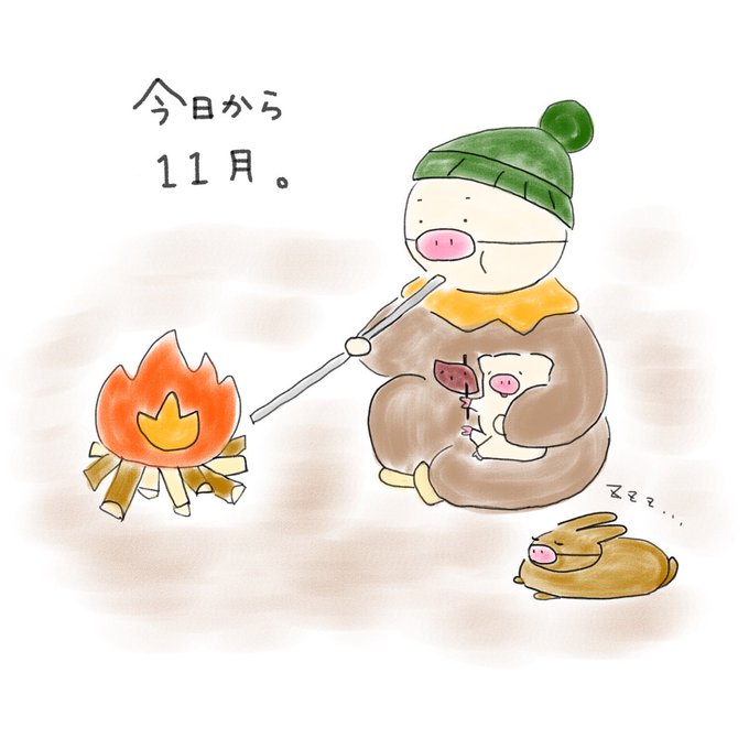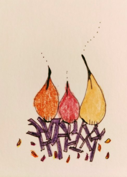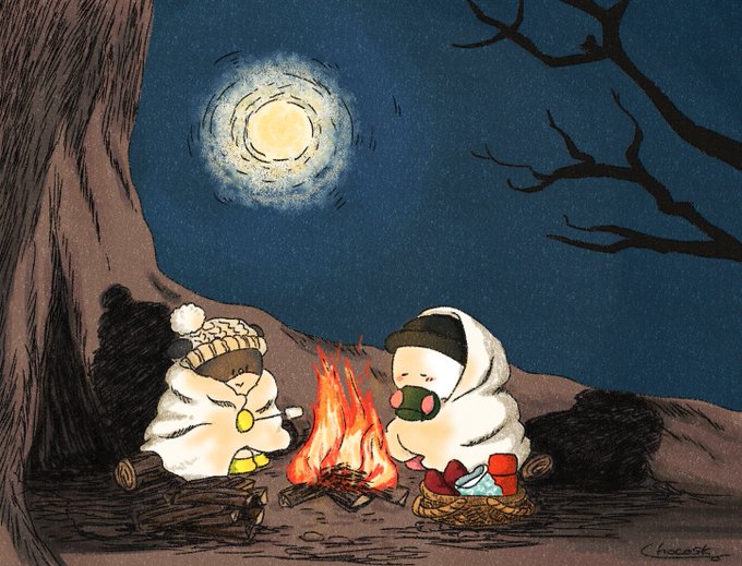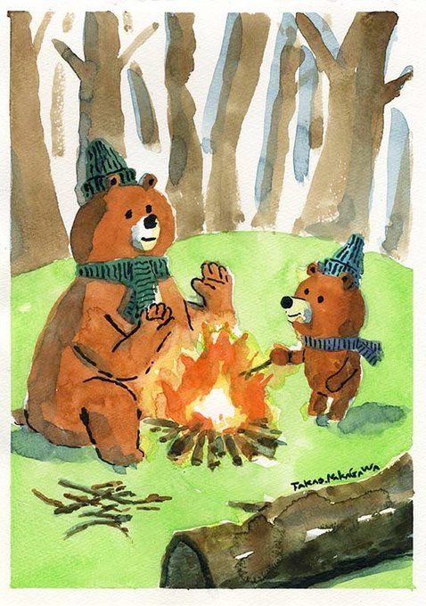 昨日くらいから急に寒くなってきたので暖かい絵を描こうと思って 「森で焚き火をするクマの親子を描きました。 今回もへたっぴ解説つきです。 #水彩画 #焚き火 twitter.com/i/web/status/1…