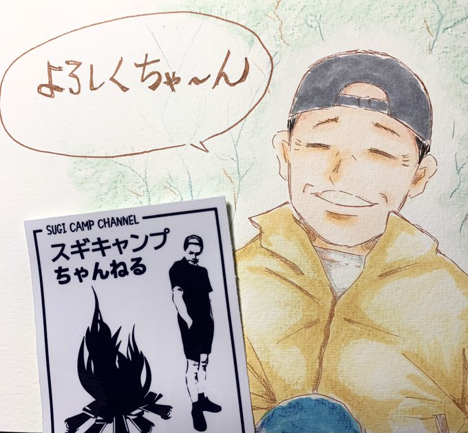 スギ。さん☺️ ステッカー無事に届きました〜〜🎁💖 早速 缶に貼ってみました♡(๑♡ᴗ♡๑) メッセージ入りなんて、嬉しいです☺️ 即効で、似顔絵描いてみましたが 似てないかな? @injyonsugi #スギキャンプちゃんねる #焚火会 #イラスト