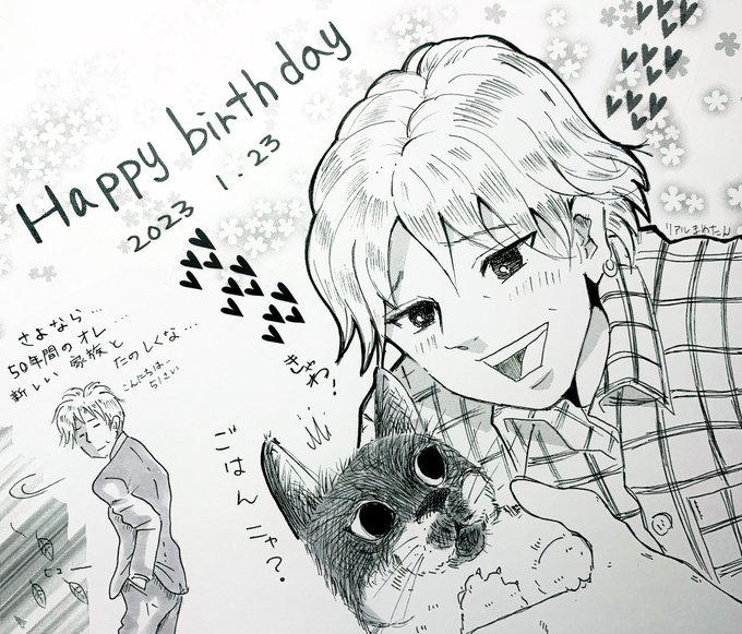 🎼ヒロシさん♫* 🌺..。 お誕生日おめでとうございます🎉🎉 あっちゃんの話しをしながら 笑ってる ヒロシさんが好きです♥️✨ これからも健康第一でお過ごしくださ い🐈⬛🎼 @hiroshidesu0214 #ヒロシ生誕祭2023 #ヒロシ誕生祭2023 #誕生祭おめでとう #焚火会 #イラスト