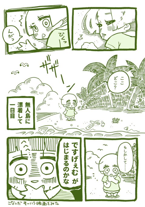 #コルクラボマンガ専科 専科生さんたちがなさっている課題を、外野参加してもいいという企画を聞きつけて、参加してみました〜 続き描くかはリアクション次第でふわっと決めます☺︎ #無人島1日目 #漫画が読めるハッシュタグ #漫画