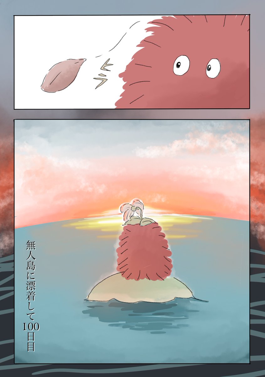 無人島に漂着して100日目。 コルクラボマンガ専科の課題漫画。締切には間に合ったけど、お題の本質である『キャラのこだわりが分かるような漫画』になったのか😳?一言目に注意して描いてと言われたのに、それよりも間だとか背景に注力してしまった。 #コルクラボマンガ専科 #無人島100日目