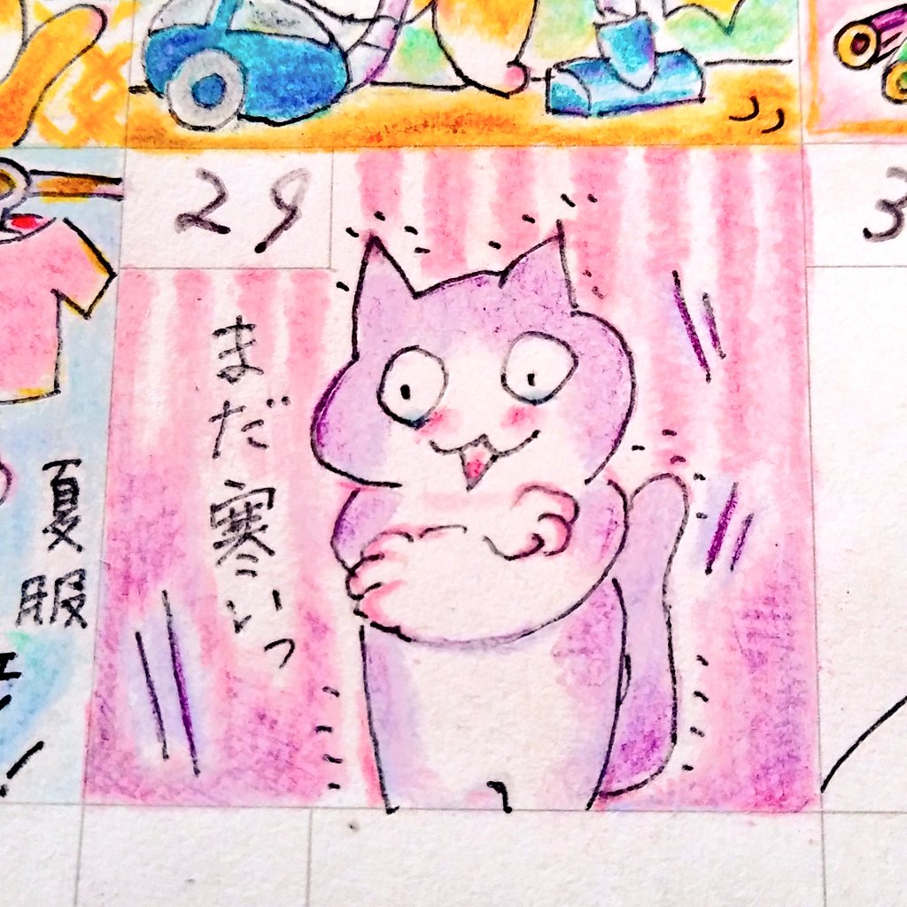 4月末😊その2 4/27 電気毛布のスイッチoff 4/28 部屋着の準備☀️👕 4/29 やっぱりスースーする😅☔ 4/30 お家でホットケーキ🥞🍴☕ #猫 #ねこ #cat #猫イラスト #イラスト好きな人と繋がりたい #illustration #無印良品 #無印ノートマンスリー #マンスリージャーナル #絵日記 #色鉛筆 #三寒四温 #朝食
