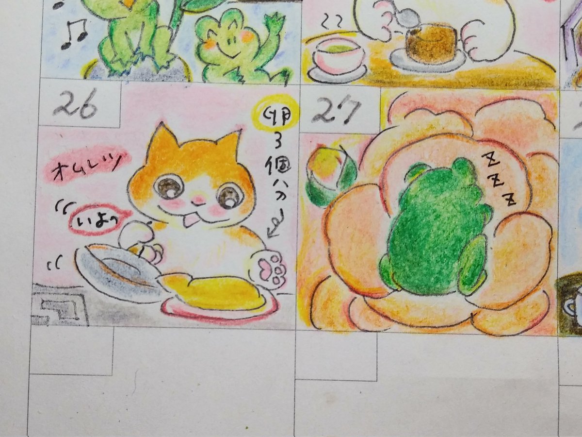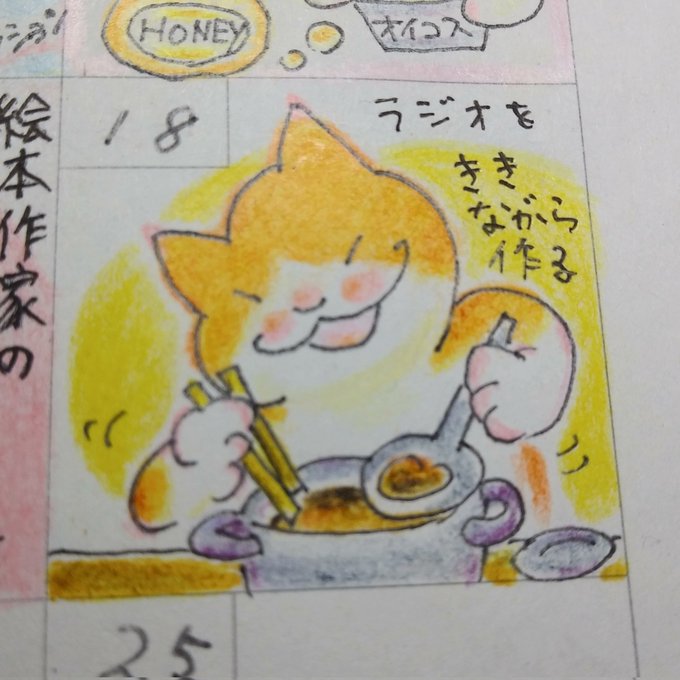 5月半ば。 5/18 味噌汁作ってるときもラジオ 5/19 カエルの歌がきこえてくるよ🐸 5/20 特別な夜のケーキ🍰 5/21 久々の恐怖体験…。思わず声がでてもーた😂 #イラスト #猫イラスト #イラスト好きな人と繋がりたい #illustration #無印ノートマンスリー #マンスリージャーナル #絵日記 #色鉛筆 #5月