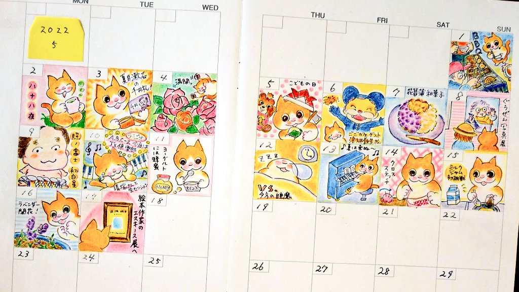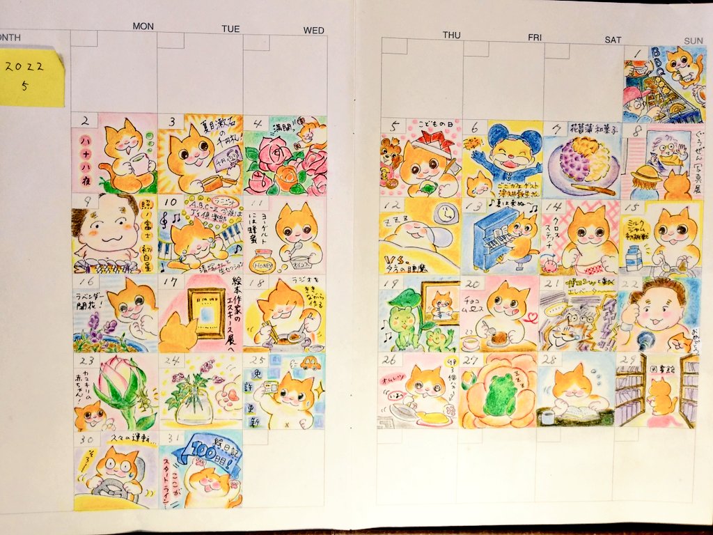 ちょっとずつ✏️ 5/4 🌹癒しの季節🌹 5/5 #こどもの日 5/6 #ニャンちゅう 声優さんの、闘病中でも前向きな言葉に感動。 5/7 花菖蒲の #和菓子🍵 #猫 #イラスト #イラスト好きな人と繋がりたい #illustration #無印ノートマンスリー #マンスリージャーナル #スケッチジャーナル #絵日記 #色鉛筆 #バラ