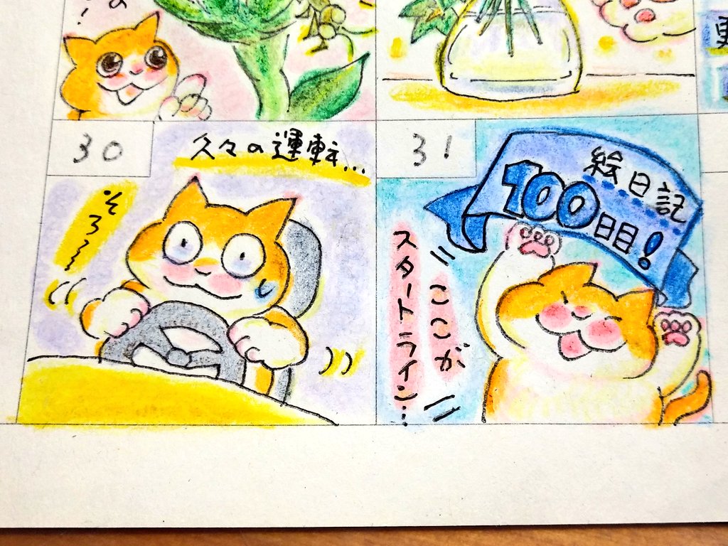 なんとか走りきった…😆🎶 5/26 特盛🍳 5/27 ばらにカエルが寝てた💤 5/28 最近眠い…😪 5/29 図書館📖 5/30 約3年ぶりに運転~ 5/31 いつのまにか100日🏃 #イラスト #猫イラスト #イラスト好きな人と繋がりたい #illustration #無印ノートマンスリー #マンスリージャーナル #絵日記 #色鉛筆 #5月