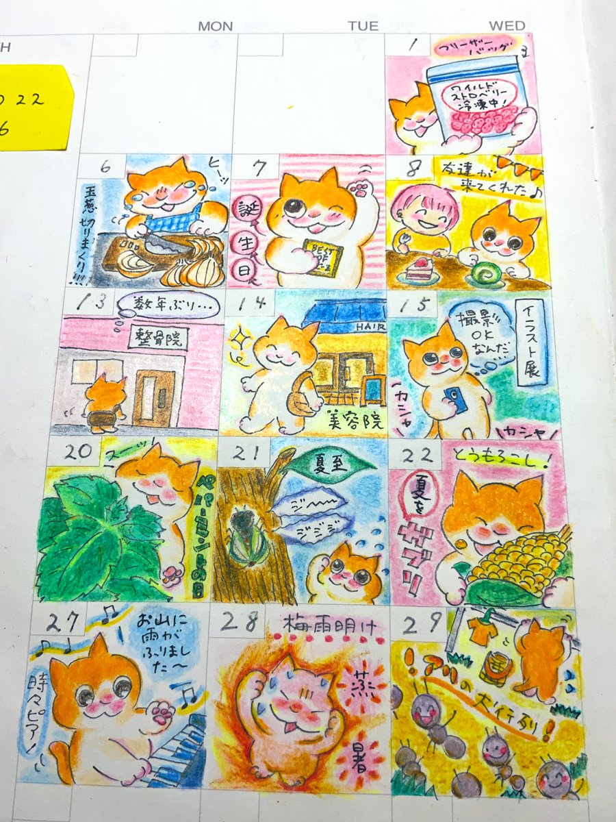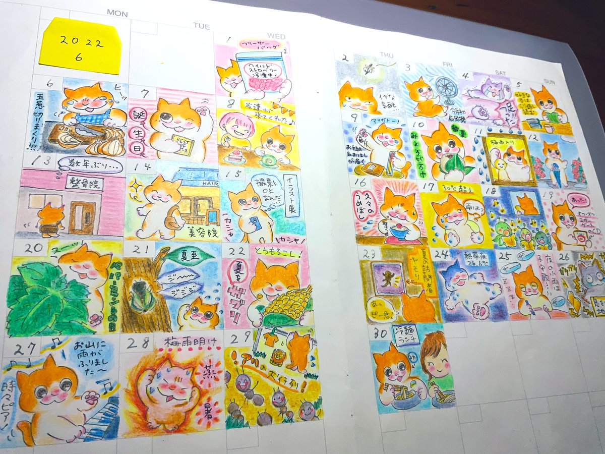 今ごろだけど6月号。 遅くなったけどアップしますっ。 明日は7月号。 #絵日記 #イラスト #イラスト好きな人と繋がりたい #illustration #無印ノートマンスリー #マンスリージャーナル #スケッチジャーナル #色鉛筆 #6月