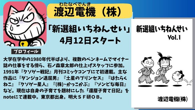 4月12日始動💨 無料でマンガが読めるアカウント「コミックジャンブル」いよいよ今週水曜日17時からスタート! 今月は #渡辺電機(株)先生 #黄島点心 先生 #原田大和 先生の3人の作品を掲載 どんな作品が掲載されるか、お楽しみに!! #マンガが読めるハッシュタグ #無料漫画
