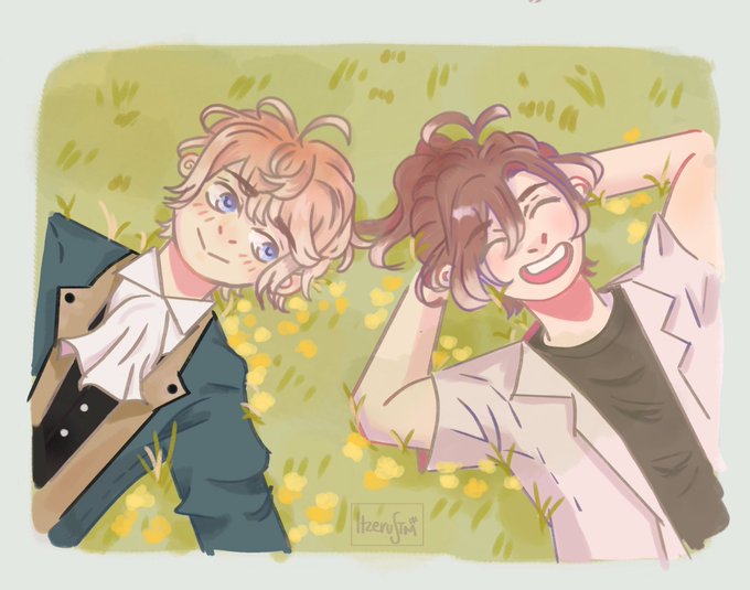 シユウさんのお誕生日イラスト2🥳 いつかのどこかの時空で3✨ 仲良しシユウくんとエドガーくん☺️📷✨ 子犬の名前はなんてつけるのかな~💛 #逆巻シュウ誕生祭2022 #逆巻シュウ生誕祭2022 #逆巻シュウ #無神ユーマ #ディアラバ