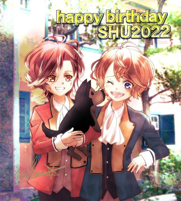 Dibujito que hice por el cumple de Yuma y se me había pasado publicar el sábado 💗🍰 #digitalart #diaboliklovers #YumaMukami #無神ユーマ #ShuSakamki #逆巻シュウ