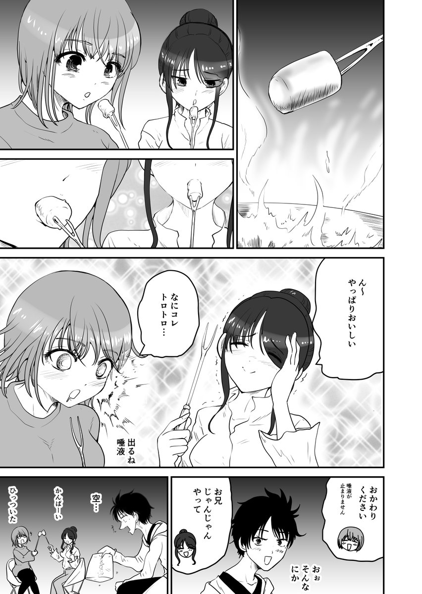 スーパーの入り口でまさかのたき火&焼きマシュマロをやってて、キッズが群がってました。 「消防法とか大丈夫なのかな…」と思いながらも焼きマシュマロの魅力に勝てず、自宅でソロ焼きマシュマロをしてしまいした。 おいしくて楽しかったです。 #漫画が読めるハッシュタグ #絵日記 #焼きマシュマロ