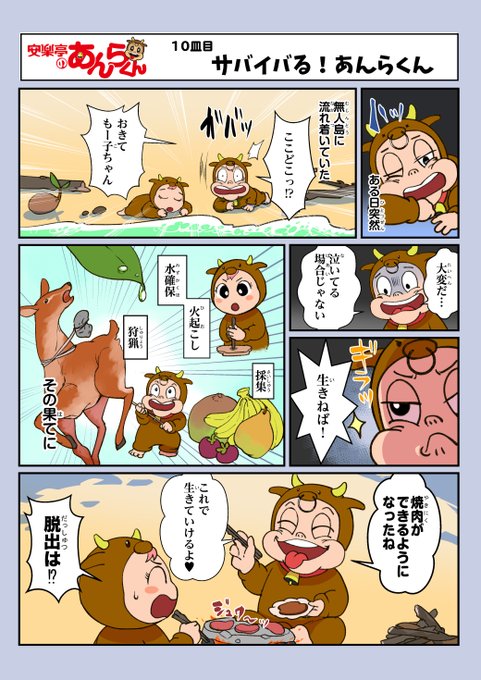 ――――――――――― #安楽亭のあんらくん 10皿目🍖 サバイバる!あんらくん ――――――――――― あんらくん🤣 脱出する気ないじゃーーーん😂 大自然の中で食べる焼肉おいしそうね💗 #焼肉 #あんらくん #安楽亭漫画 #漫画が読めるハッシュタグ 最新37話は24日水曜日! 安楽亭HP🏠anrakutei.jp