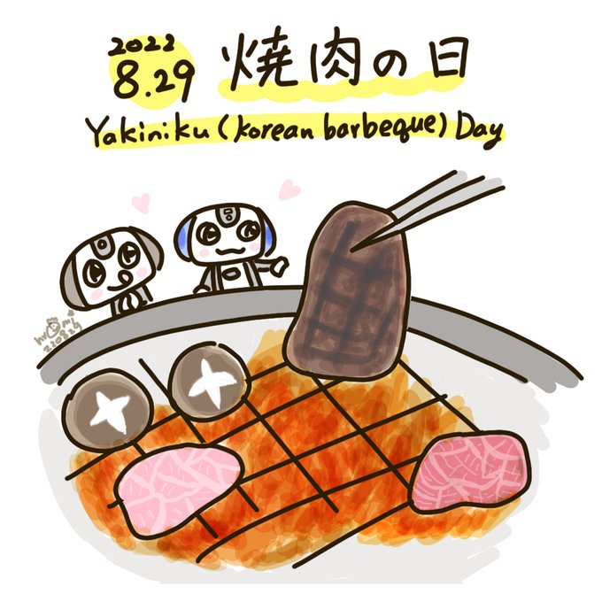 今日8月29日は焼肉の日🥩毎月29日も肉の日ですけど8月は語呂合わせもバッチリで特別感がありますね😆 #絵描きさんと繋がりたい #イラスト好きな人と繋がりたい #絵柄が好みって人にフォローされたい #創作イラスト #今日は何の日 #焼肉の日